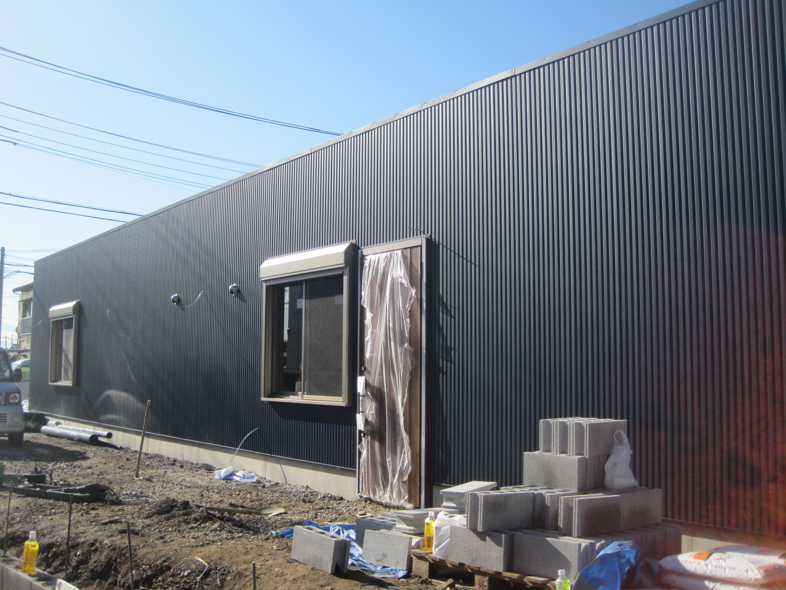 外壁:金属サイディング 現地張り 工期:本体のみ1か月